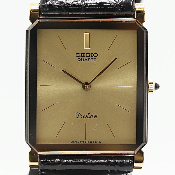 デッドストック級 箱付 稼働 良品 セイコー ドルチェ 7730-5020 QZ ゴールド文字盤 メンズ/レディース腕時計 0539000 9ERT ABC16724 SMZ