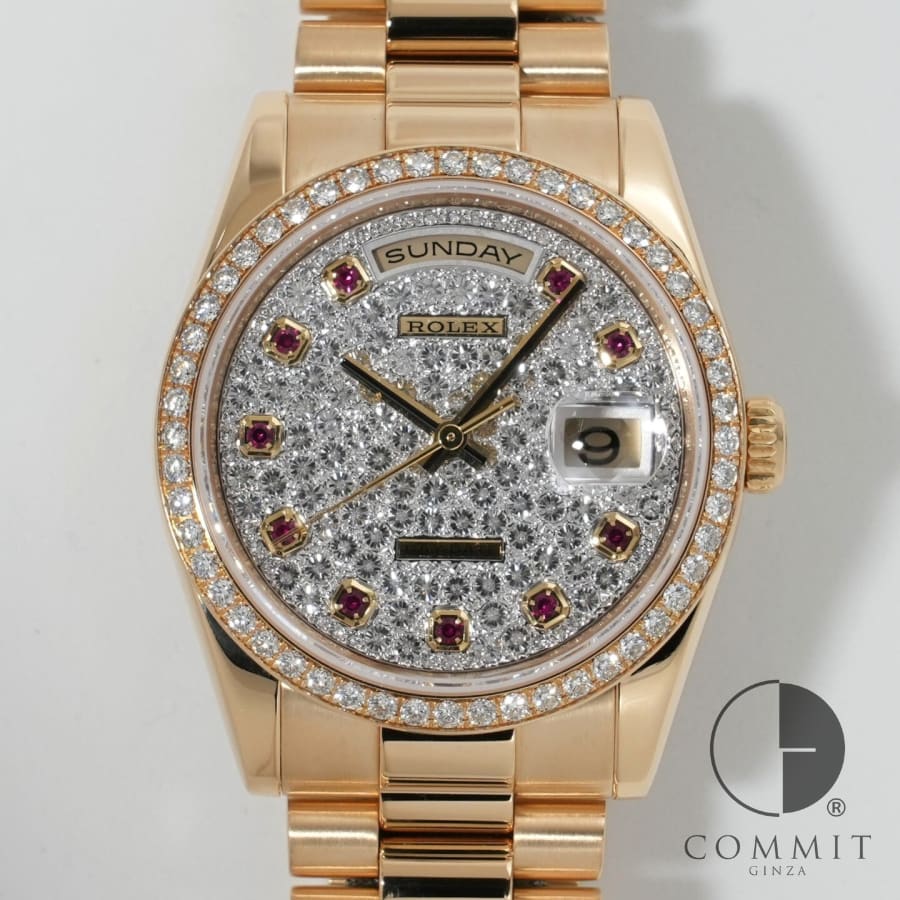 ロレックス(ROLEX) デイデイト(DAY-DATE) 118348 パヴェダイヤモンド10Pルビー レディース 美中古