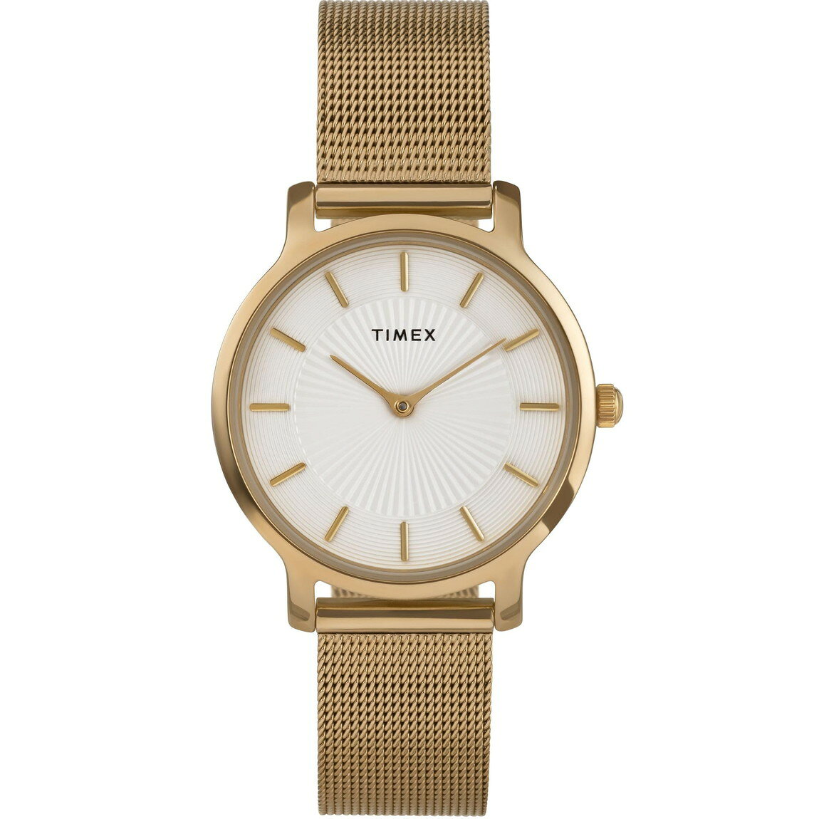 Timex レディース Transcend 34mm 腕時計 ゴールドトーン メッシュブレスレット クイックリリース シルバートーンダイアル ゴールドトーンケース