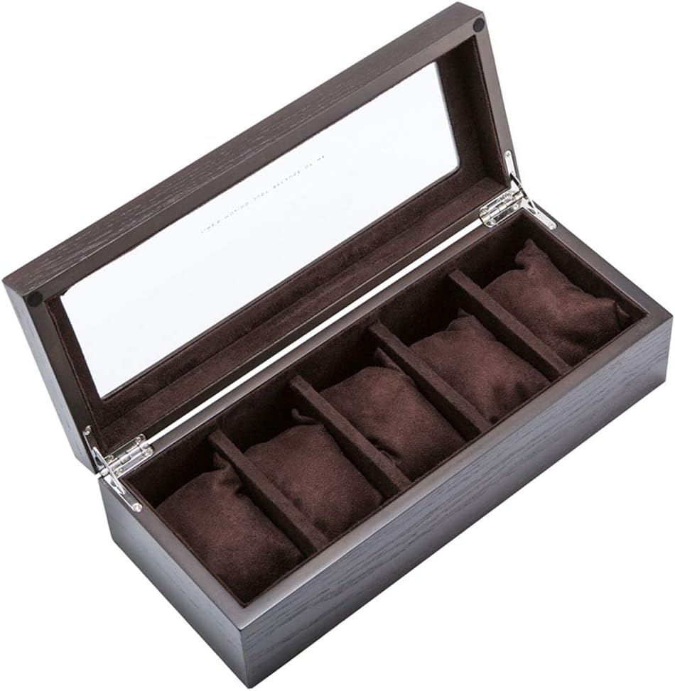腕時計ボックス 木製腕時計収納ケース ガラストップ 取り外し可能収納枕付き 男女兼用 5グリッド