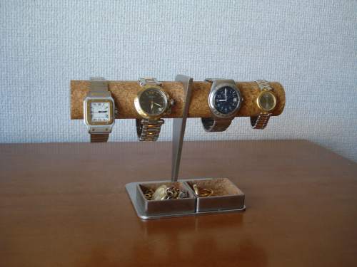 腕時計スタンド 2本掛けバーコルクステンレスどっしりロングトレイ腕時計スタンドAK634 アクセサリーを収納できます。ak-design