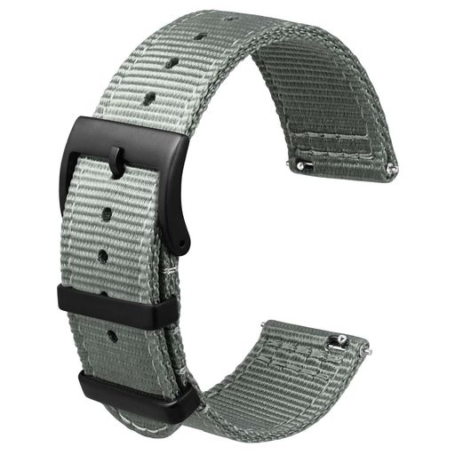 [Anbeer]18mm時計バンドナイロンツーピース式クイックリリーズ替えベルトメタル製ループ付きグレーブラックバックル