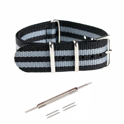 [Jumpsunfun]NATOベルト20mm時計ベルトナイロンミリタリー時計バンド腕時計替えベル黒灰(交換説明書交換工具バネ棒付)