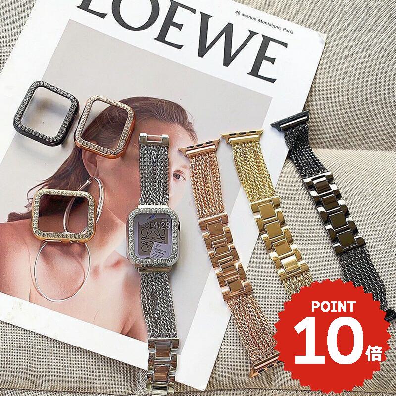 【アップルウォッチバンドプレゼント中】バンド 高級 ジルコニア キラキラ 保護ケース ライン くすみカラー ステンレス 時計 シルバーバンド プレゼント おしゃれ レディース メンズ