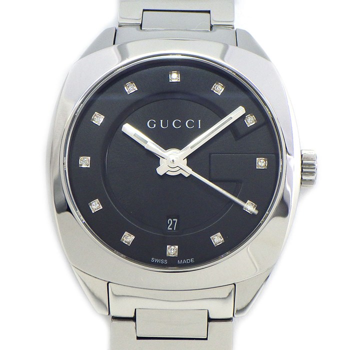 グッチ GUCCI 腕時計 ミドルウォッチ 142.5 / YA142504 12ポイント ダイヤインデックス ブラック文字盤 デイト SS クオーツアナログ 【中古】