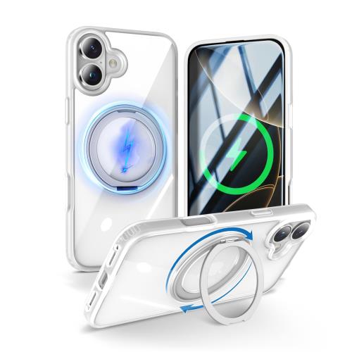 360度回転スタンド・縦横両対応KATSUTOYO iPhone 16 用 ケース magsafe 黄ばみにく 強磁力リング マグネット搭載 360°回転スタンド 縦横両対応 MagSafe対応 高耐久性 米軍MIL規格 耐衝撃 指紋防止 アイフォン16 用 ケース (6.1インチ)背殻クリア 白くて透明