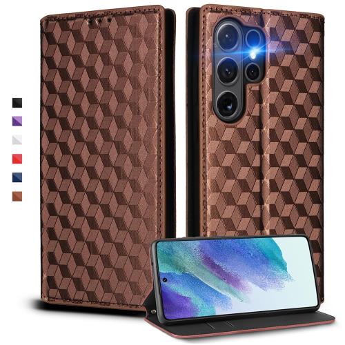 UnivoColors Galaxy S25 Ultra (SC-52F/SCG32) 手帳型カバー 高級合皮 カード収納 マグネット開閉 スタンド機能 ストラップホール付き 全面保護 カメラ保護(ブラウン)