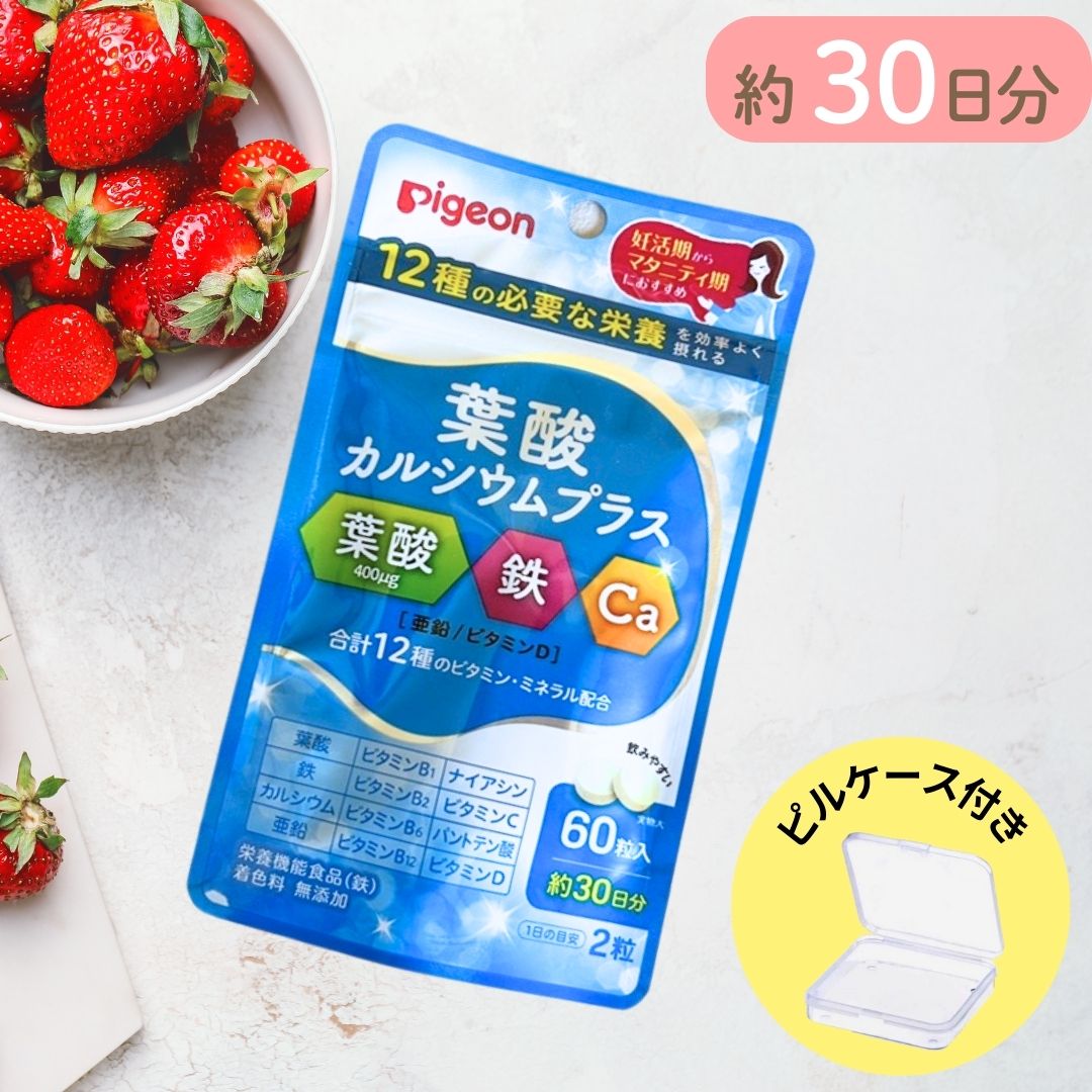葉酸カルシウムプラス ピジョン Pigeon 葉酸 サプリ 妊活 60粒 葉酸サプリ 保存料無添加 着色料 無添加 葉酸 鉄 カルシウム 鉄分 サプリメント タブレット ピルケース付き 送料無料