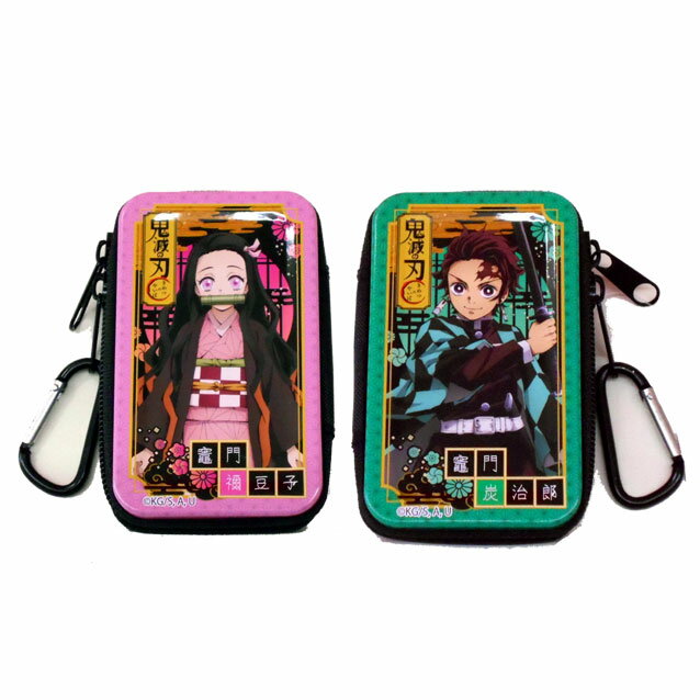 鬼滅の刃(竈門炭治郎・竈門禰豆子)★カラビナ付き缶ケース/マルチファスナー缶ケース/小物ケース/収納ケース/ダブルファスナー付き