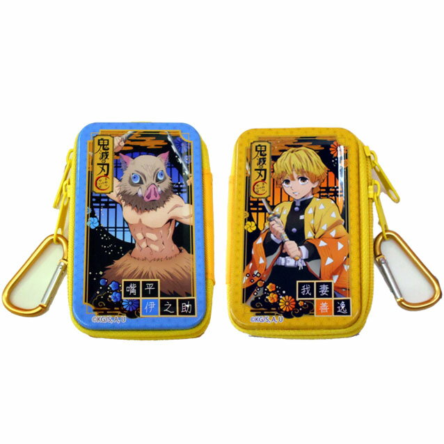 鬼滅の刃(我妻善逸・嘴平伊之助)★カラビナ付き缶ケース/マルチファスナー缶ケース/小物ケース/収納ケース/ダブルファスナー付き