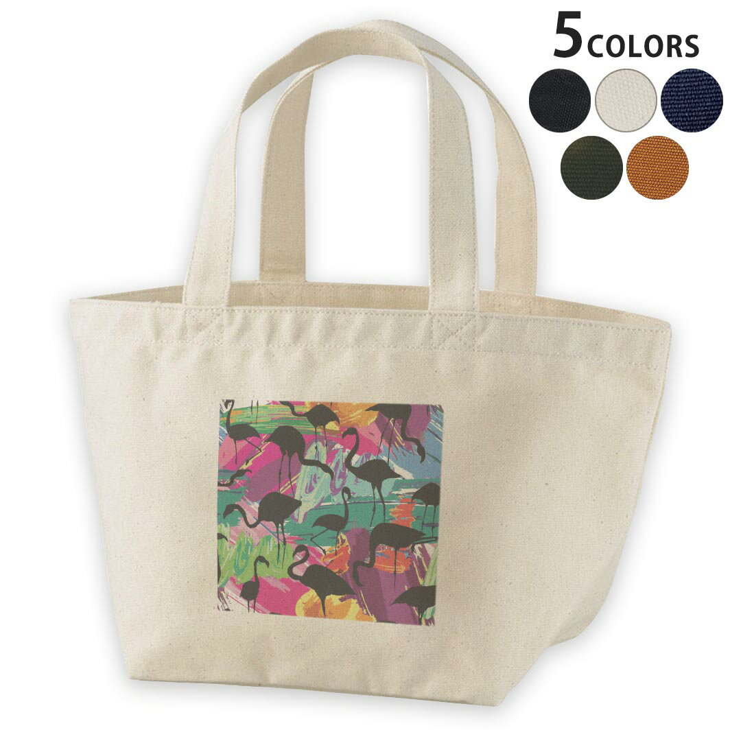 デザインランチバッグ キャンバス デイパック バッグ レディースバッグ トートバッグ ナチュラル 黒 black 011161 フラミンゴ 鳥 カラフル