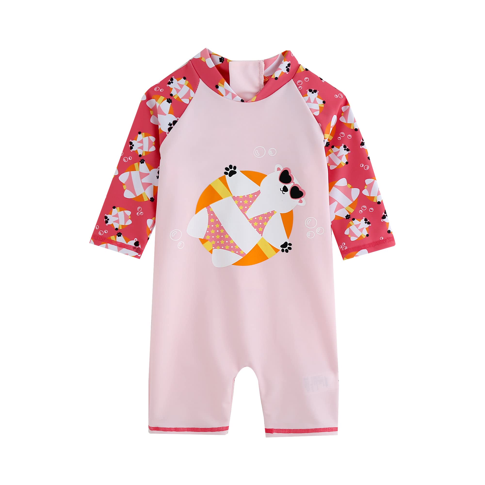 【送料無料】[Vaenait Baby] 0-24ヶ月 紫外線カット UVカット ラッシュガード ベビー 子供 幼児 アニマルキャラクター 花柄 長袖 ワンピース 水着 Gu Baby Swimsuit 色:Tanning Bear Pink、サイズ:S