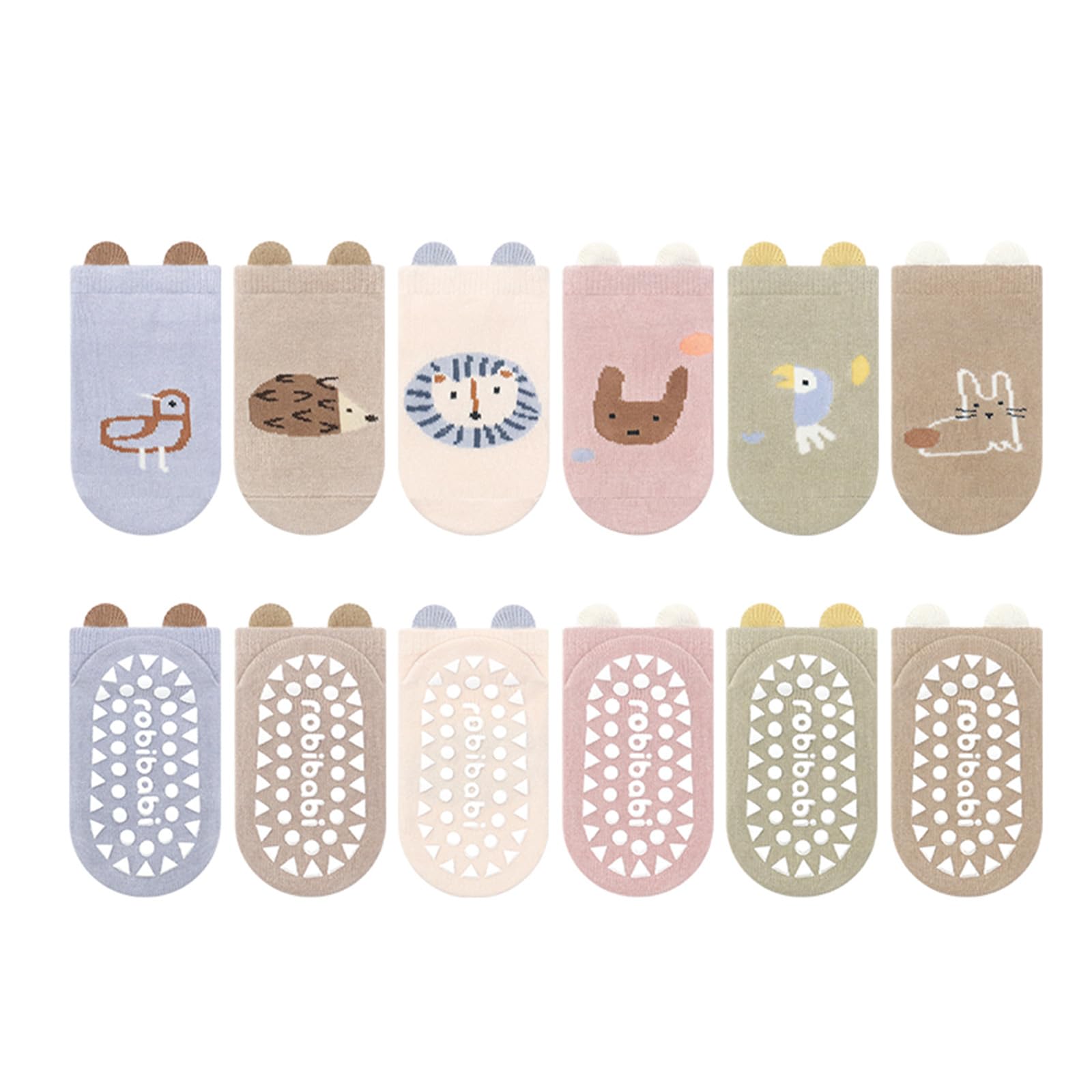 【送料無料】[HAYAHARU] ベビー ソックス 赤ちゃん 靴下 滑り止めパッド付き かわいい動物柄 新生児 あったか 防寒 冷え対策 出産祝い 秋冬 柔らかい 綿 0-5歳 色:動物柄、サイズ:0-6 Months
