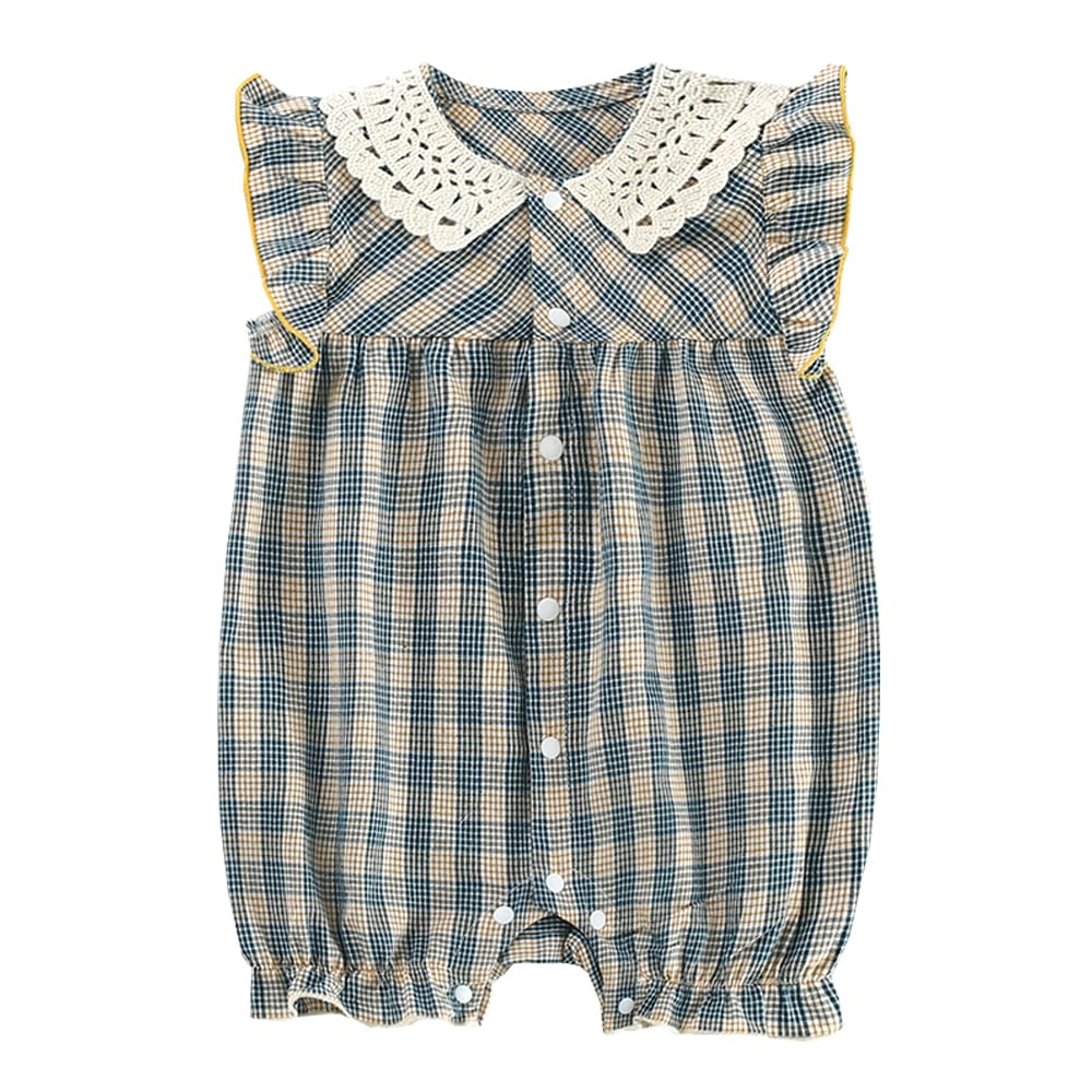 【送料無料】Baby nest ベビー服 ロンパース ノースリーブ カバーオール 綿100% 新生児服 後ろ開きタイプ 女の子 赤ちゃん服 出産祝い プレゼント 色:ギンガムチェック、サイズ:90