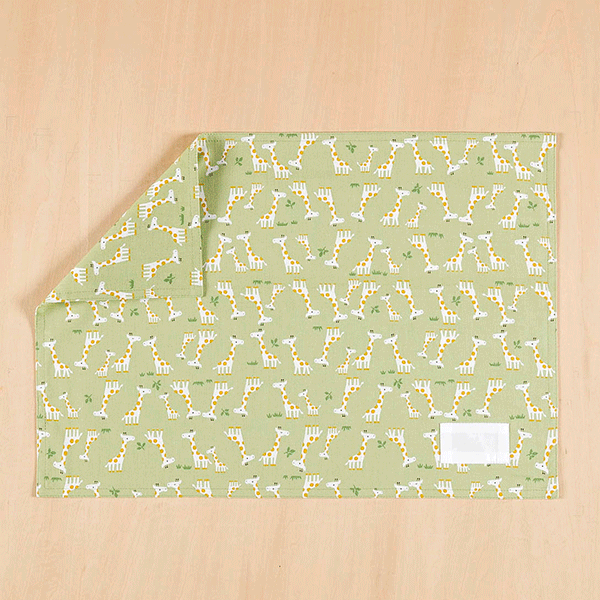 氏名票(名札)が縫い付けてあるランチョンマット。入園・入学の用意は名前を書き入れるだけ。