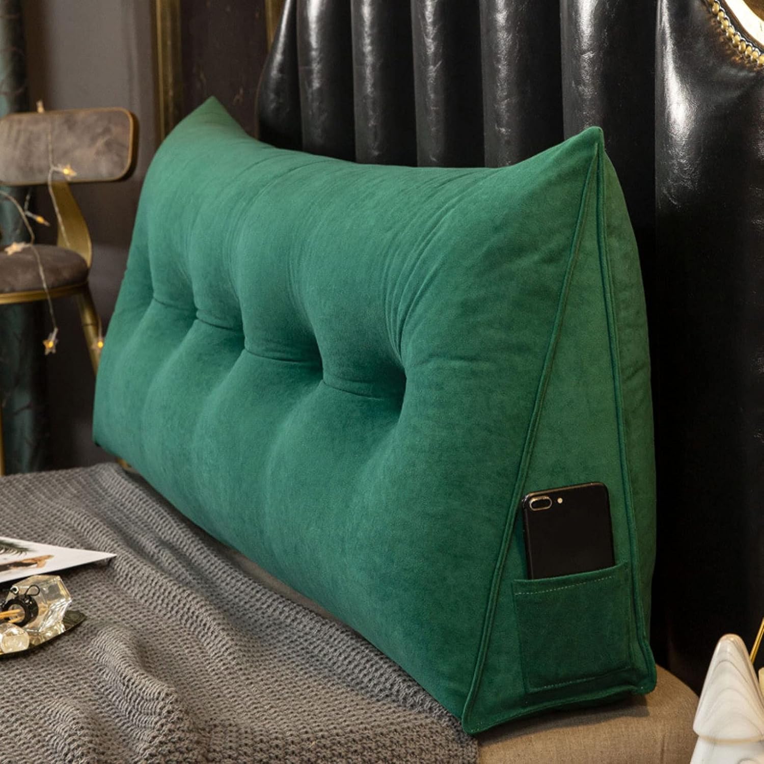 背中クッション 低反発 ダークグリーン ベッド用 シングル 読書用 夏用 ヘッドボード 三角クッション 三角枕 柔らかい 抱き枕 180*50*20cm テレビ枕 背もたれ 長方形クッション 就寝前