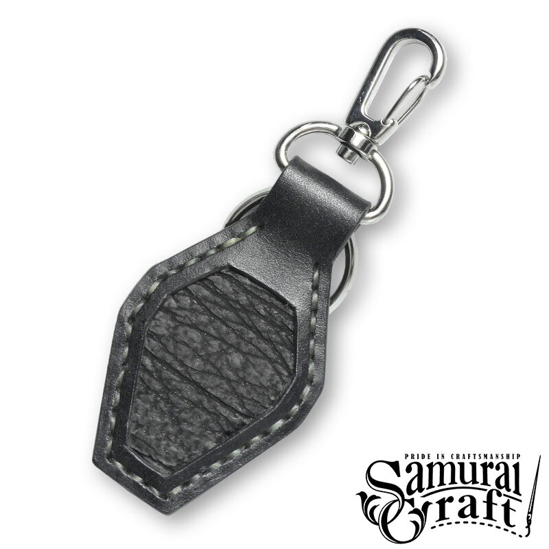 【サムライクラフト】 レザーキーリング キーホルダー シャークスキン サメ ハンドメイド ヌメ革 経年変化 ベジタブルタンニンなめし 本革
